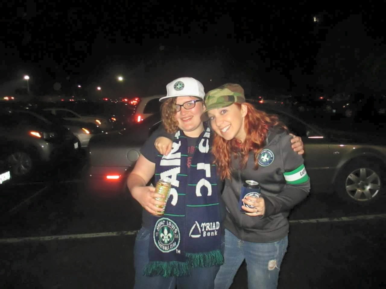 One evening, my uncle decided to take me to the first chant practice at soccer park. When we got there people were still filtering in, but everyone seemed pretty comfortable and like they knew each other pretty well. My uncle introduced us to a few people and then we left to get some sodas and something from the shop, that was where I got my first ever piece of STLFC merchandise that I still wear proudly now. When we got back pretty much everyone was there and just kind of hanging out, and out of the corner of my eye I saw the two people leading the whole thing. My uncle urged me to go talk to them and introduce myself, and to be honest I was pretty scared of the two of them, just because they seemed so comfortable and natural with all of the louligans. Little did I know that those two, Jack and Liz, would become two of my mentors in the louligans.
